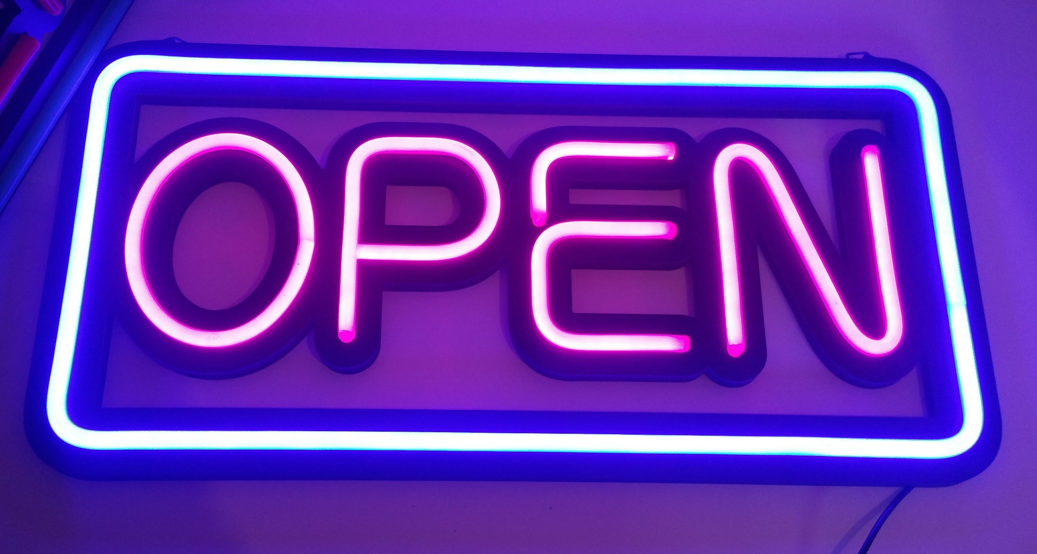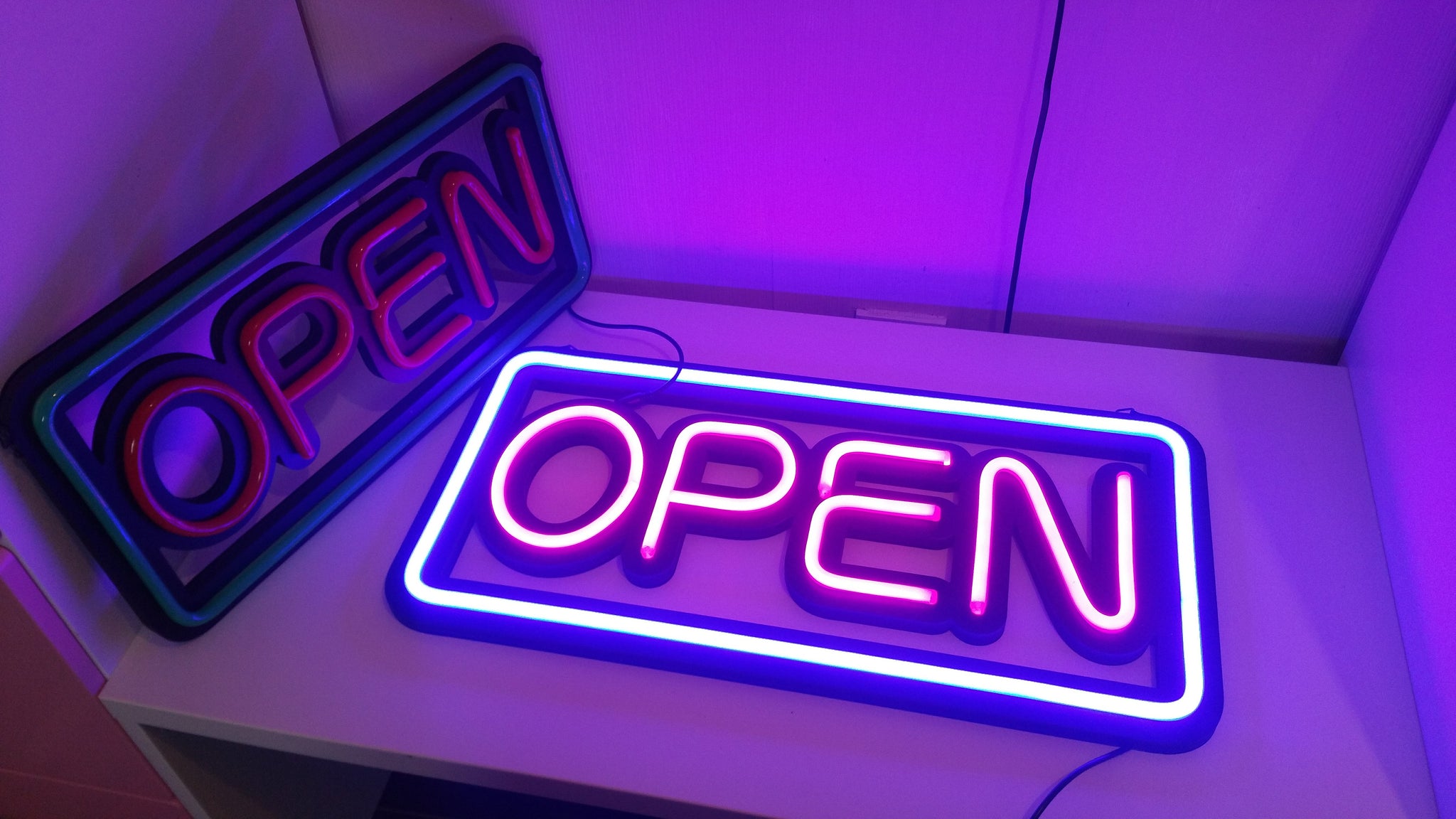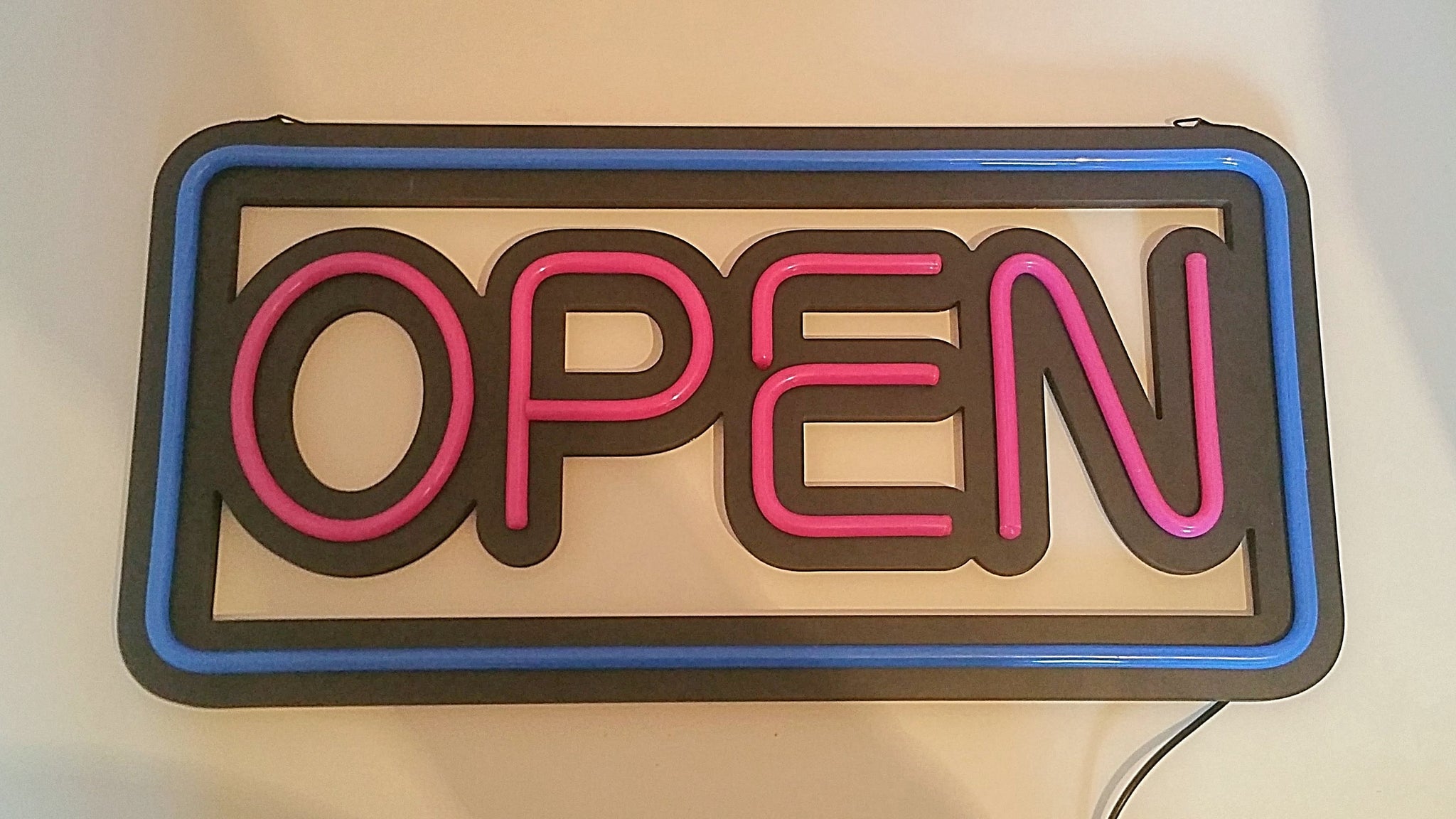 This Neon look LED 'Open' sign is vibrant, eye-catching and is the perfect way for you to tell potential customers you're open for business with confidence.